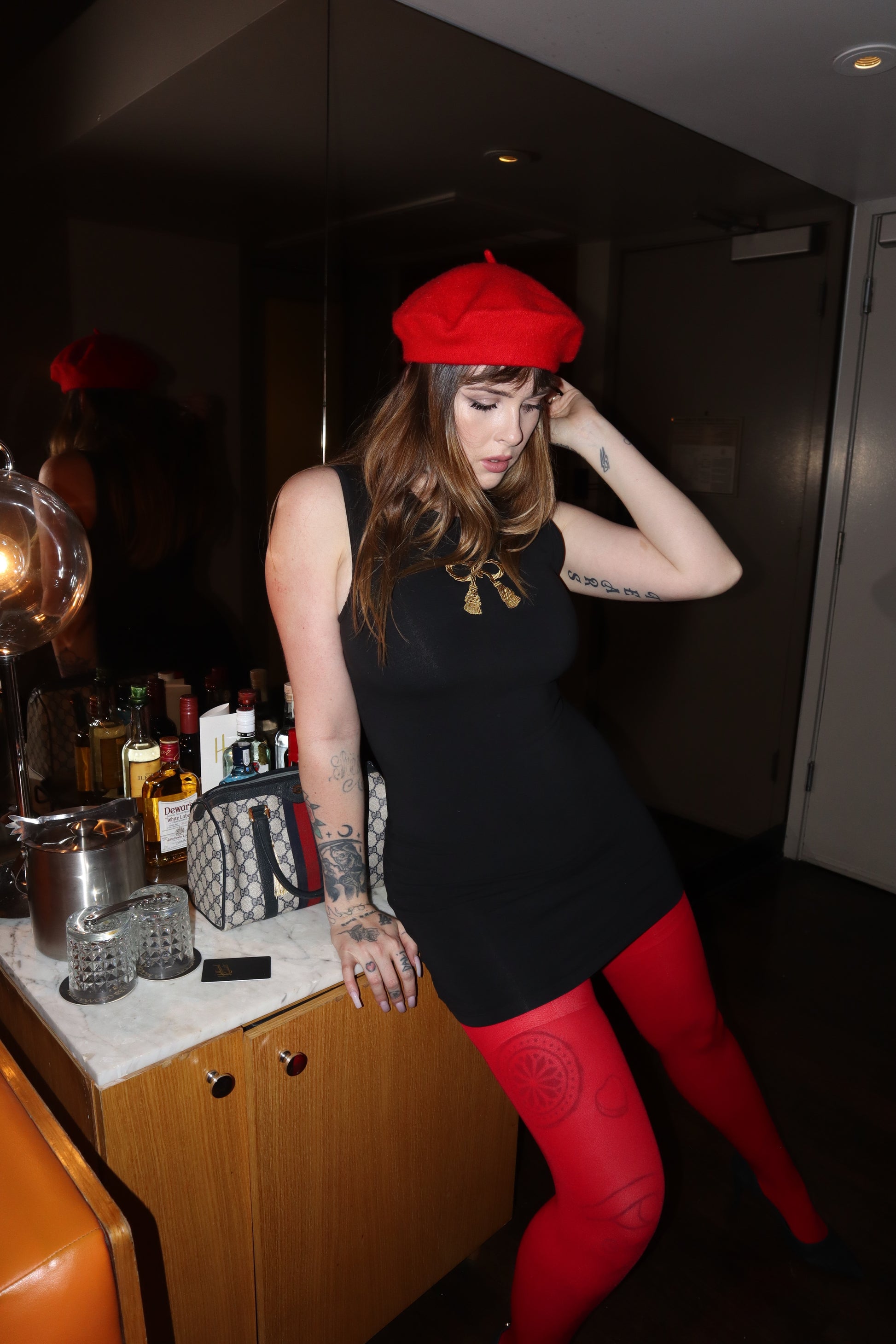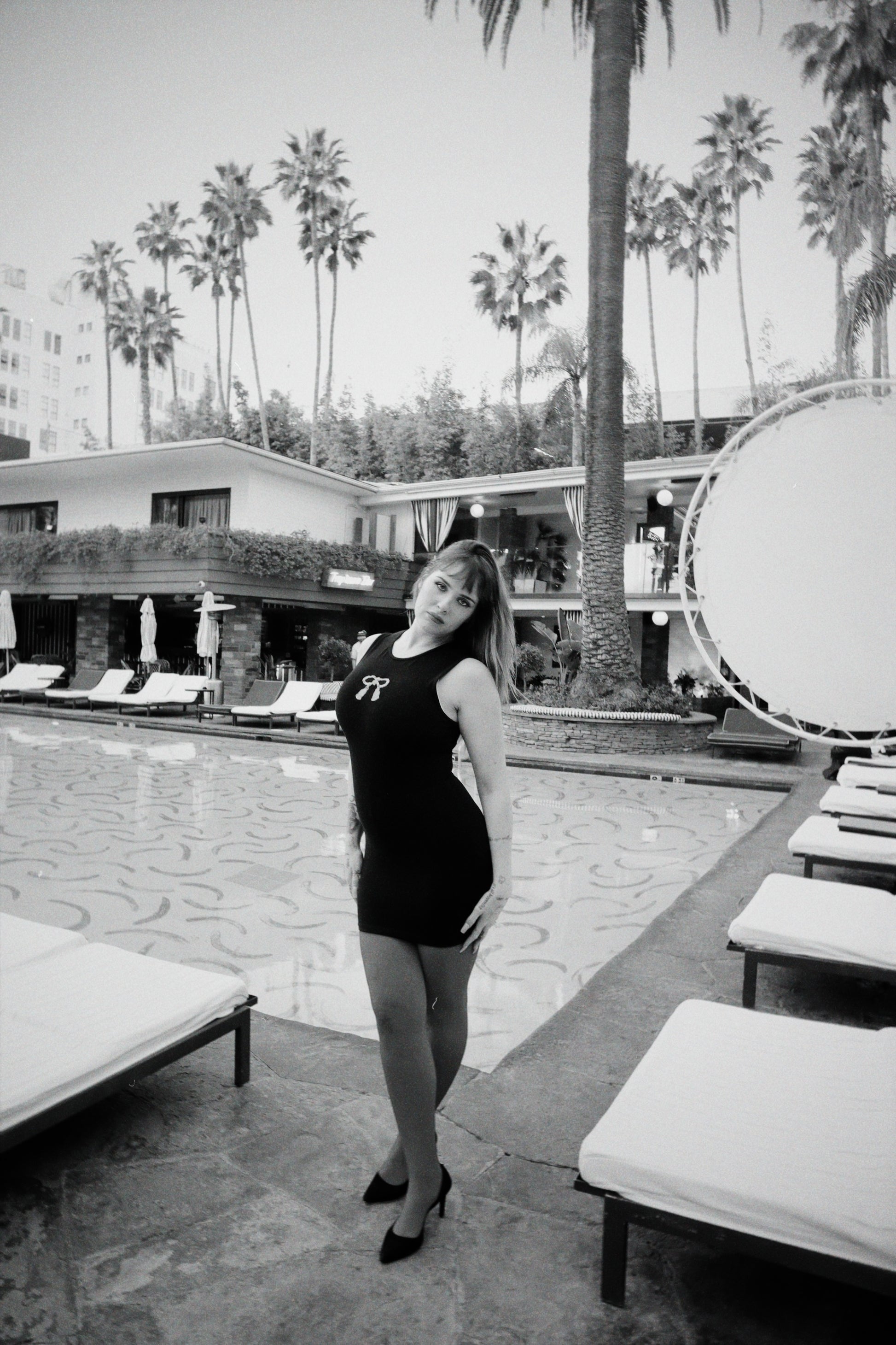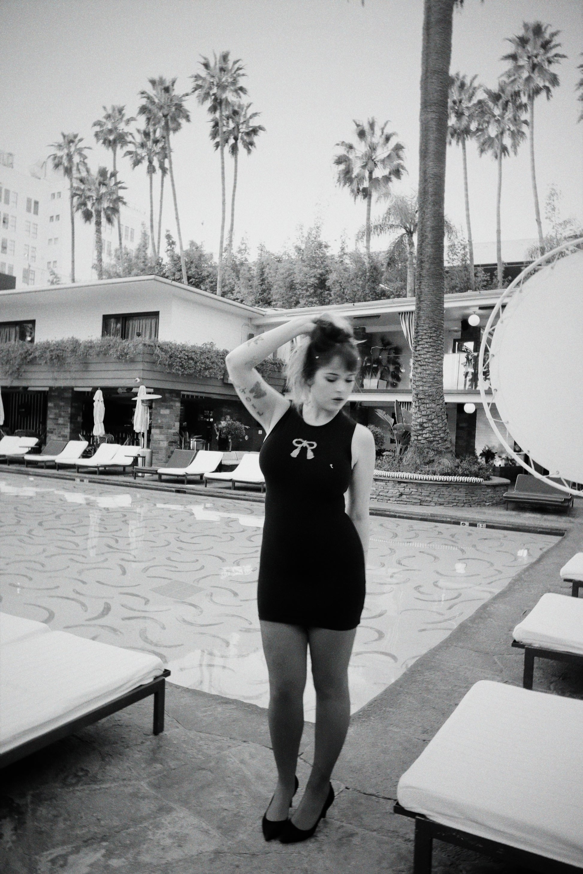 The Dinner at Eight Dress is made from our luxurious thick & stretchy cotton elastane and offers a mid-thigh length for an easy-to-style staple for year-round soireés of any caliber. Layer with tights, fur, and a beret for Dinner at Eight... or wear her barefoot with messy hair for a drunken romp around the Garden of Allah. Embroidered with our signature Gilded Bow.