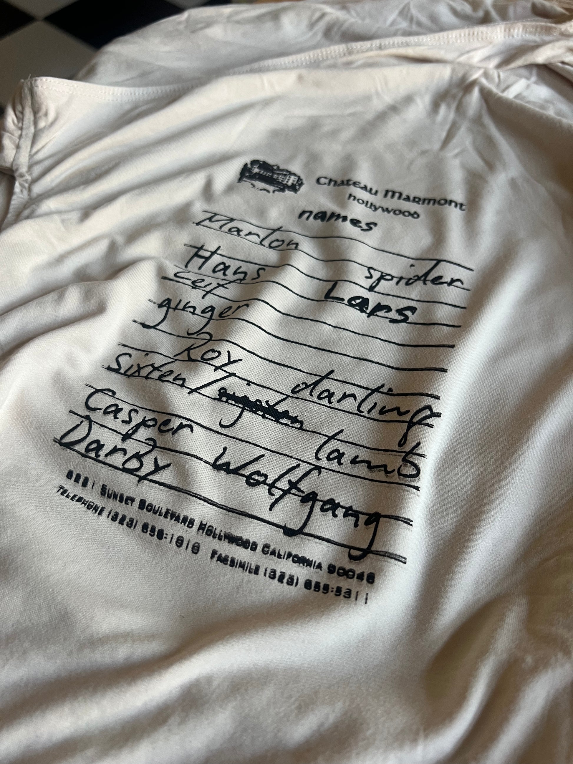 Because every Hollywood mom has fantasized baby names from her cottage courtyard at the Chateau... Buttery soft and stretchy rayon spandex blend - screen printed in Hollywood.