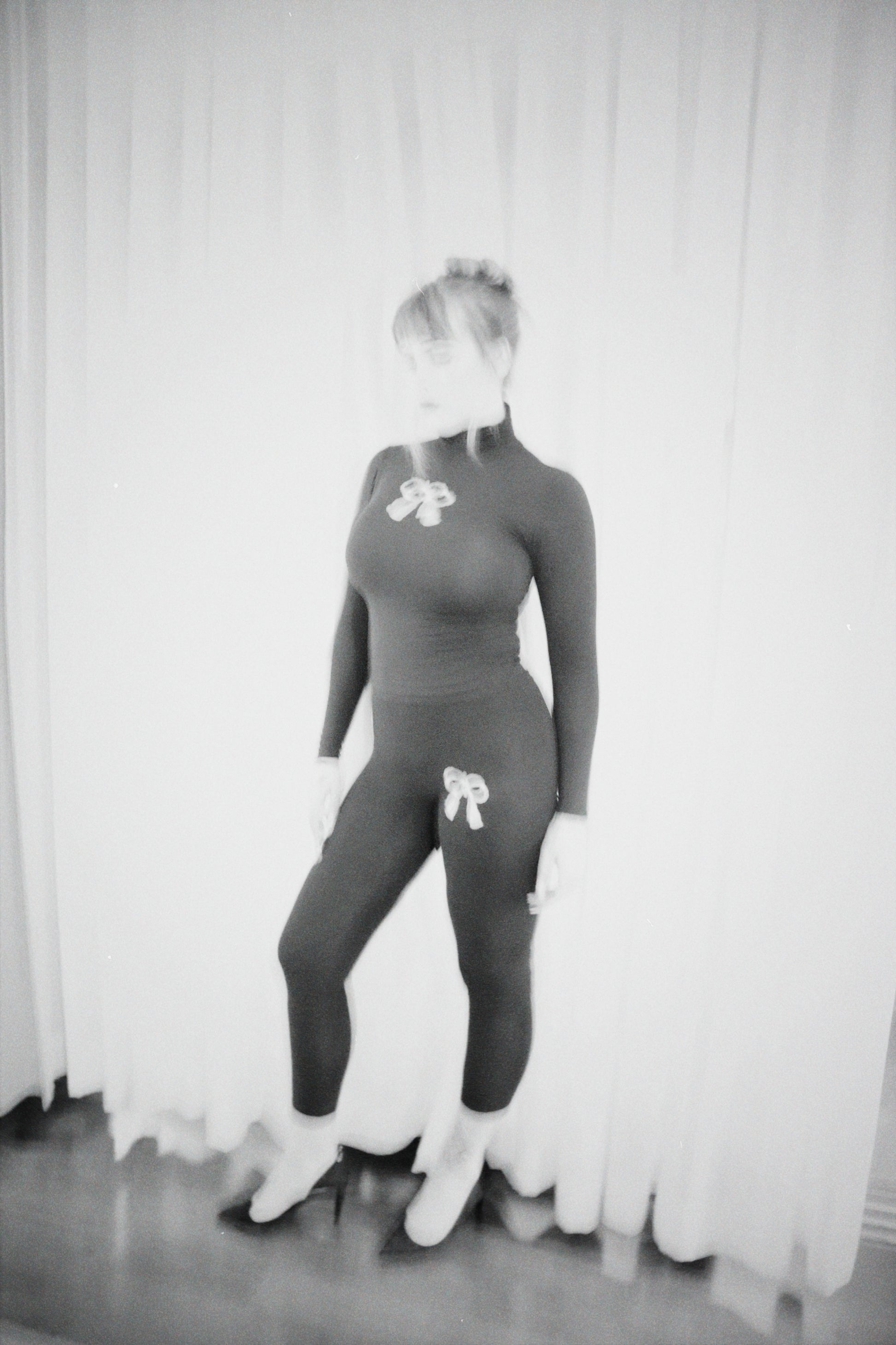 Become an instant bombshell...The Marlene Turtleneck was made with body-hugging in mind. Comfortable compression and support from our thick cotton elastane blend give a tight fit throughout. Full fold-over turtleneck, and embroidered with our signature Gilded Bow. Pair with our Marlene Legging and black pumps for a classic Hollywood, feminine silhouette.
